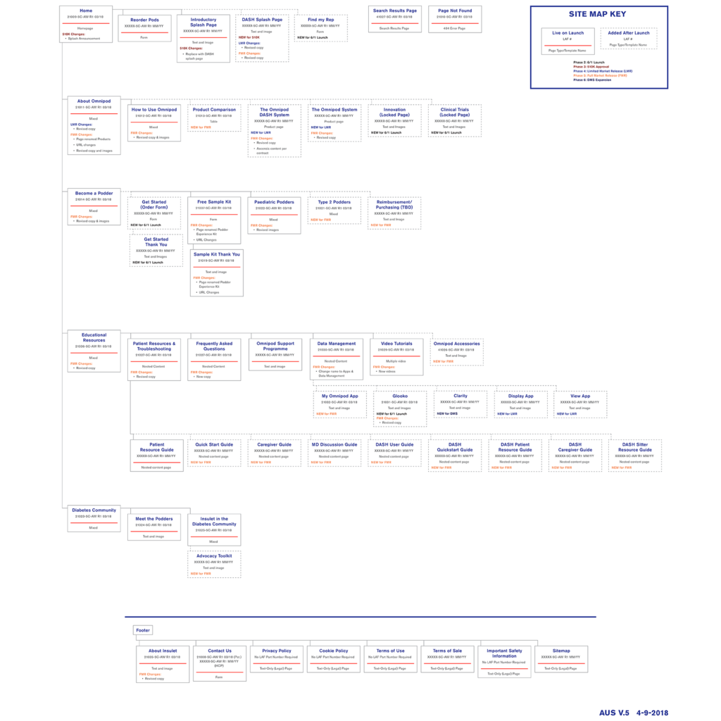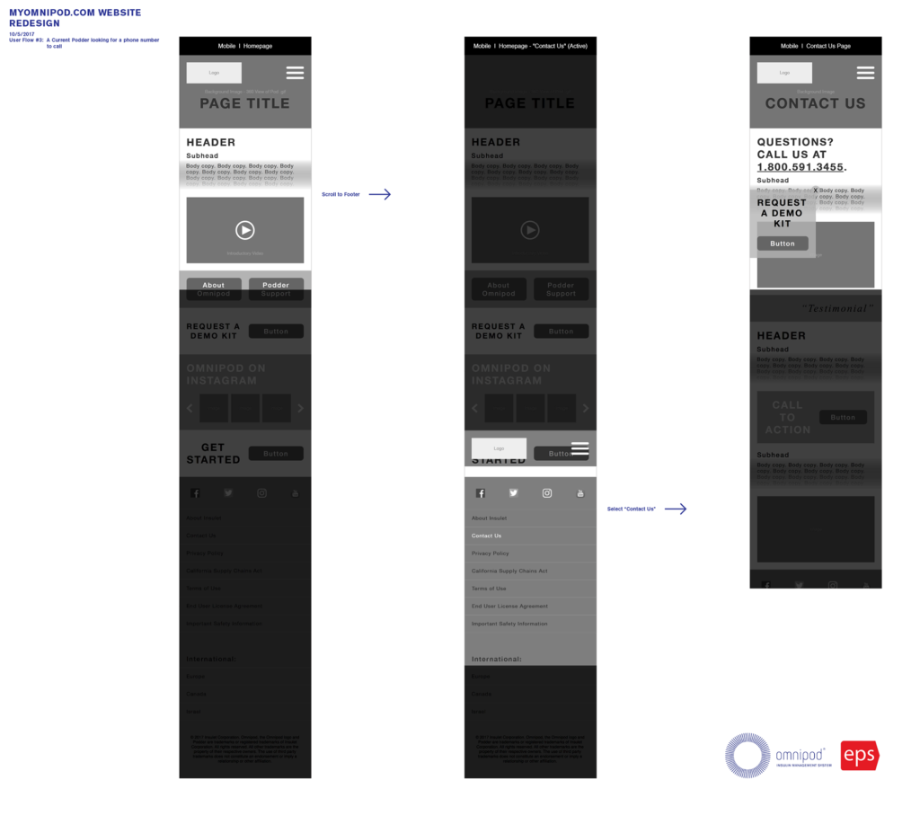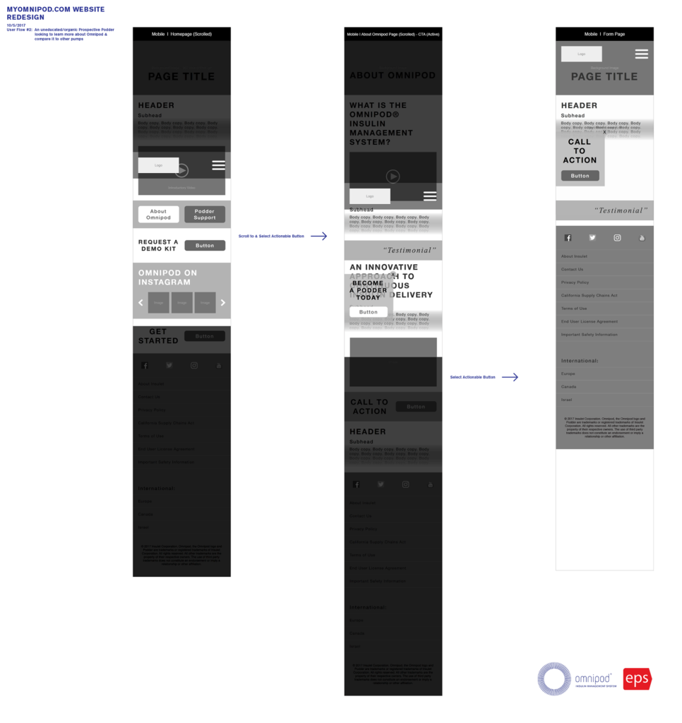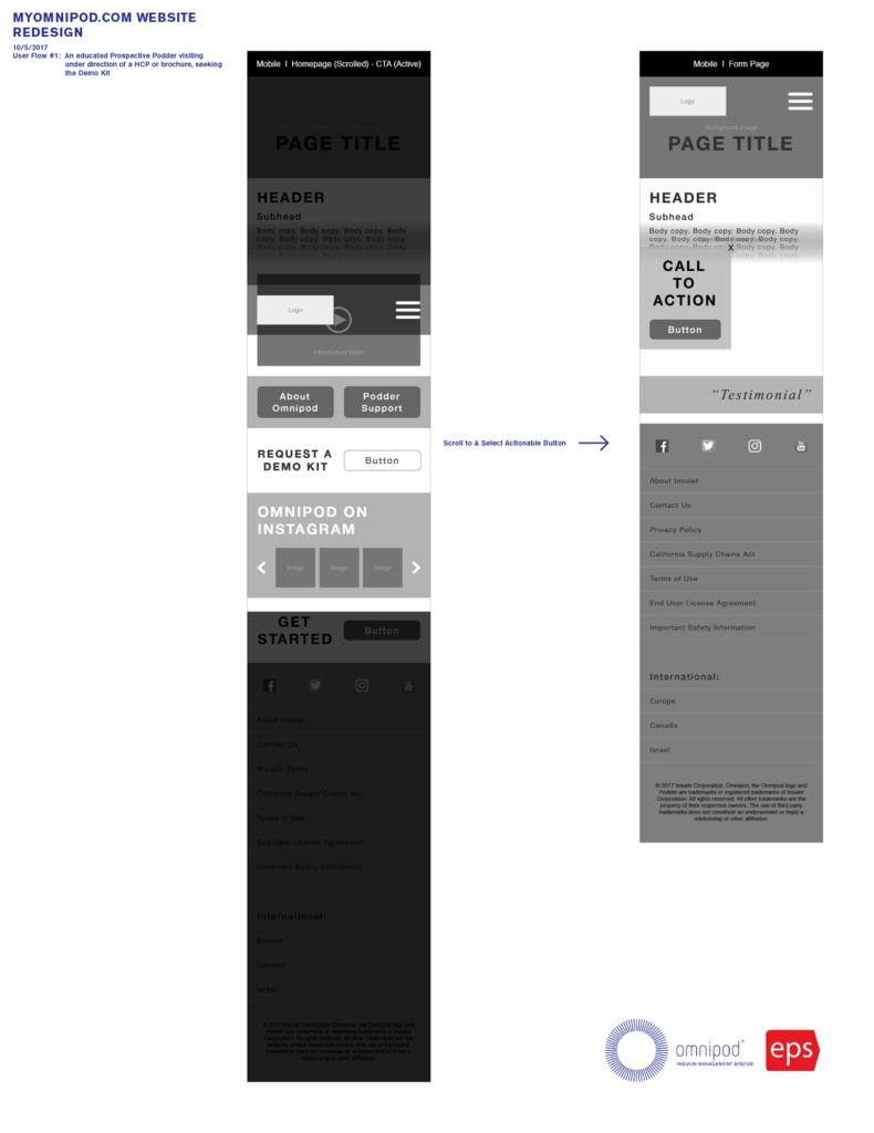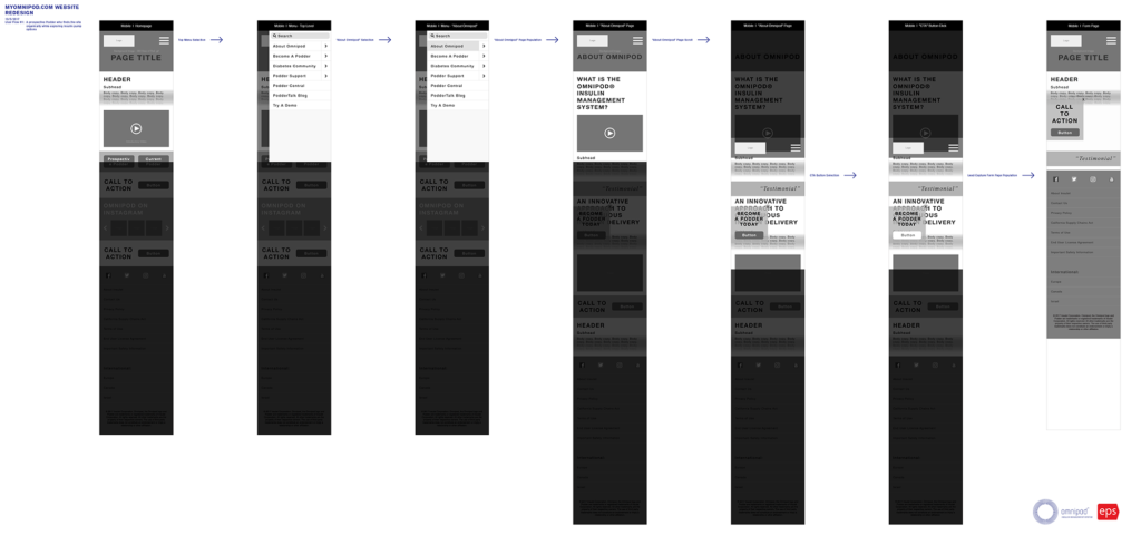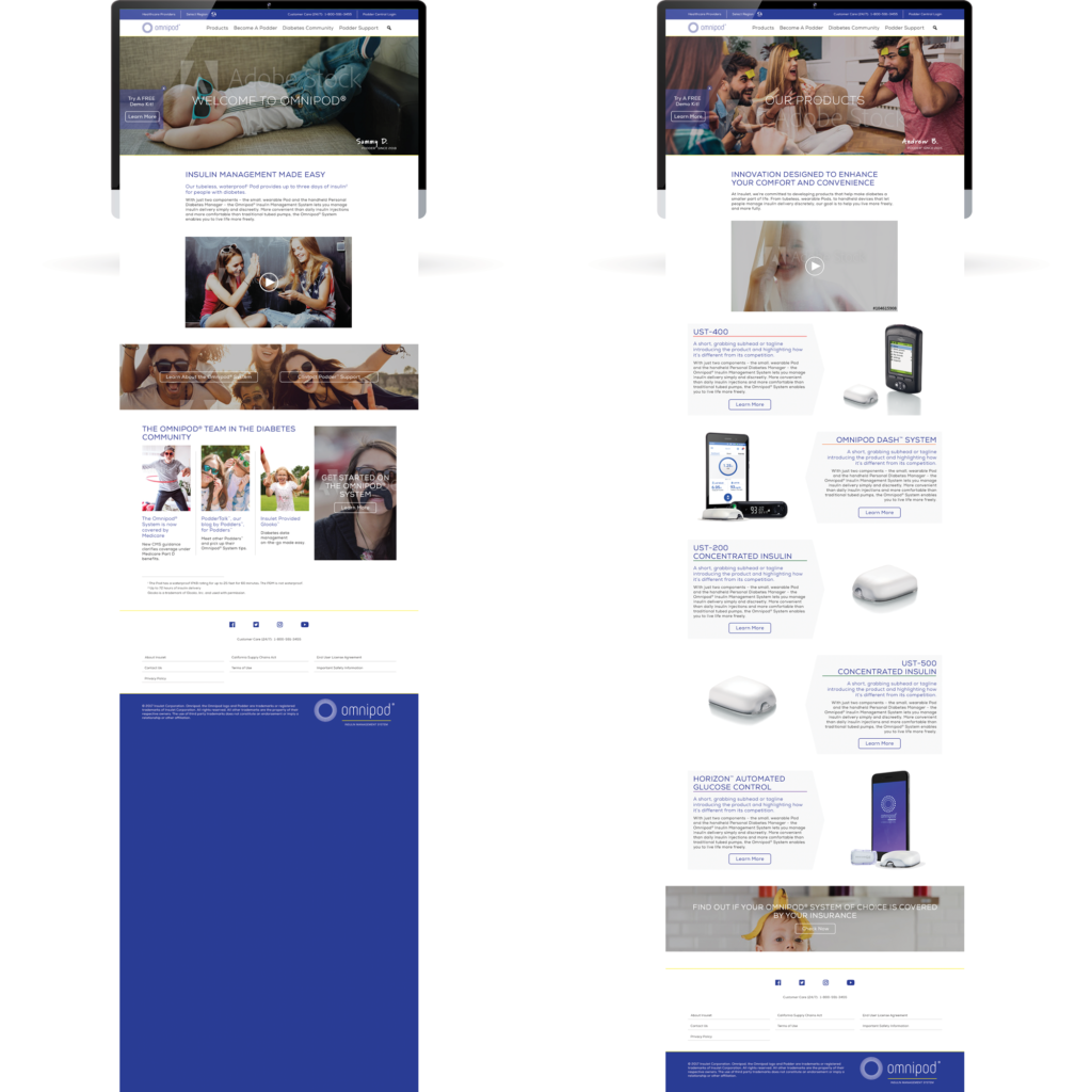 Created sitemap, userflows, wireframes, and high-fidelity mockups while working within brand standards and with a third-party development vendor. Developed new branding for Omnipod DASH™ System and applied to existing Omnipod® website UX/UI.